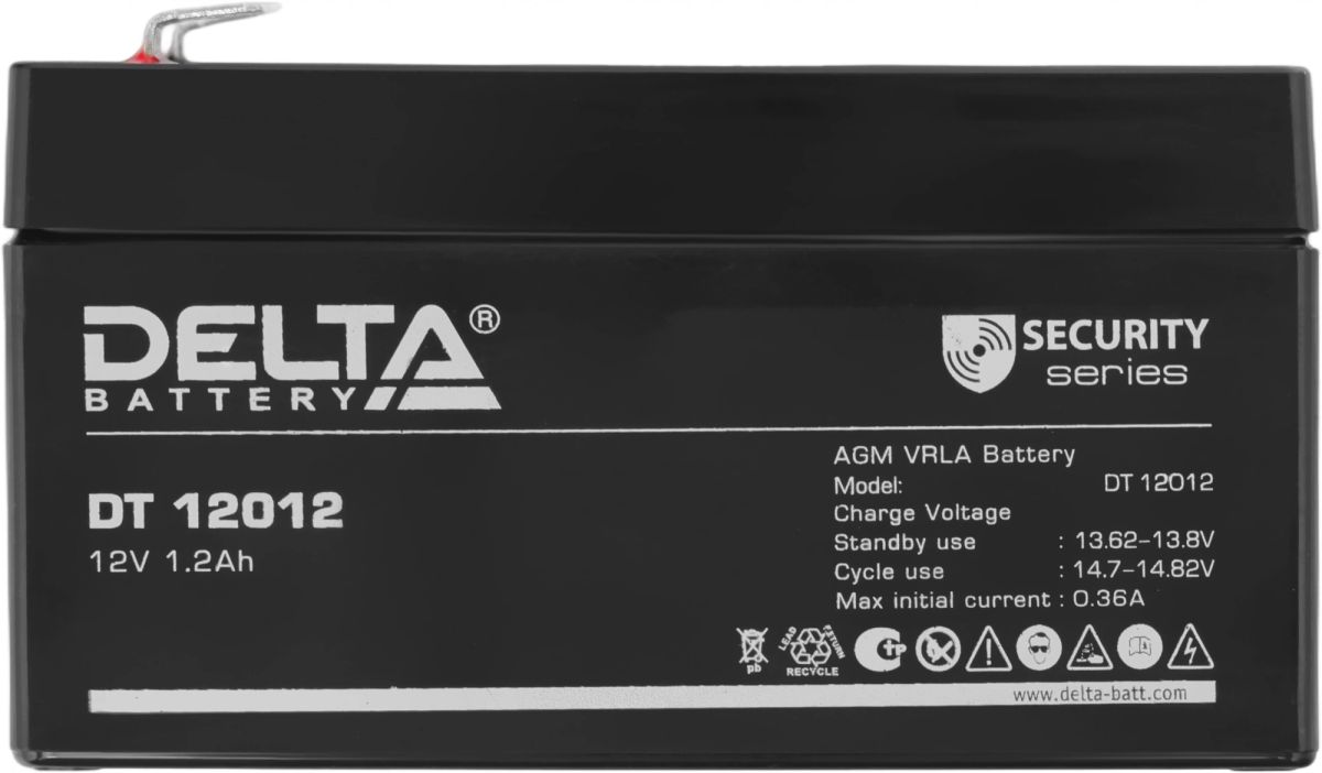 Аккумуляторная батарея Delta DT 12012. Напряжение 12В, емкость 1,2Ач. Имеет низкое внутреннее сопротивление и высокую плотность энергии. Предназначена для охранно-пожарных систем и СКУД. Срок службы 5 лет.