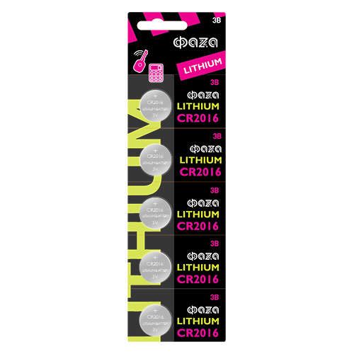 Элемент питания литиевый CR2016 3В BL-5 (уп.5шт) ФАZА 5003156