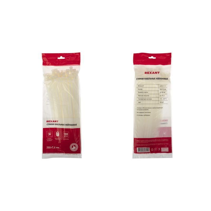 Хомут кабельный 7.6х300 нейл. бел. (уп.100шт) Rexant 07-0302