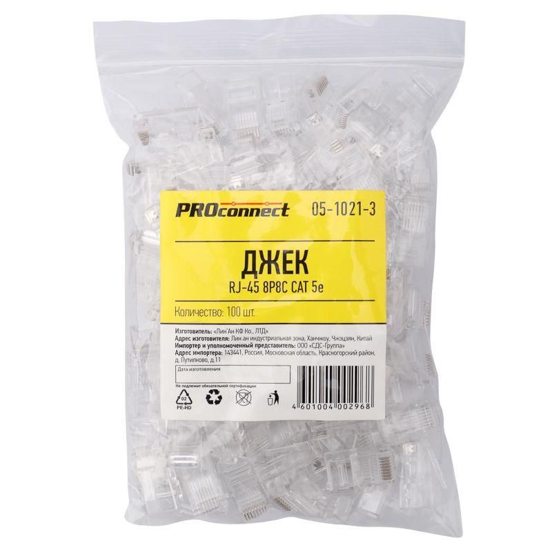 Джек RJ-45 8P8C CAT 5e PROconnect предназначен для соединения телекоммуникационного оборудования: компьютеры, офисные АТС, сетевые коммутаторы, концентраторы, коммутационные панели, маршрутизаторы, патч-панели, сетевые карты, а также другого оборудования, имеющего гнездо разъема 8P8C. Джек RJ-45 8P8C (англ. Registered jack) размещают на конце компьютерных или телефонных кабелей для соединения с розеткой, хабом, свитчем, сервером, модемом, роутером или другим компьютером. Штекер изготовлен из прозрачного качественного пластика и имеет 8 посадочных мест и 8 ножей-контактов. На контакты (ножи) нанесен слой технического золота для безупречной пропускной способности разъема. Для опрессовки разъема на кабеле необходим специальный обжимной инструмент. Разъемы серии RJ представленные нашей компанией соответствуют международным стандартам IEEE и обеспечивают функцию (PoE). PoE - технология передачи электрической энергии вместе с данными. Согласно стандартам IEEE 802.3af-2003 и IEEE 802.3at-2009 все разъемы серии RJ рассчитаны на номинальное напряжение 48 В постоянного тока ( макс = 57 В ) с максимальным током до 600 мА.